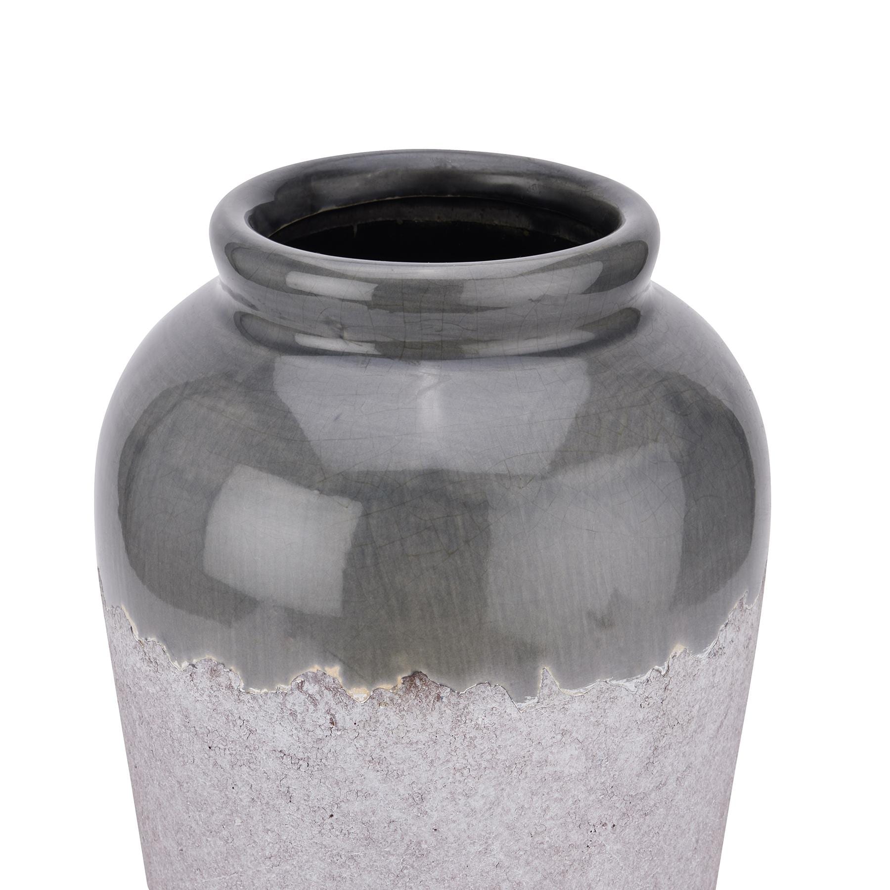 Add a pop of color to your interior with our Medium Blue/Grey Ceramic Floor Vase. This beautifully crafted piece is the perfect blend of style and functionality. Its sleek design and cool color palette seamlessly complement any decor style, from contemporary to classic. Made with high-quality ceramic, this floor vase is durable and easy to clean, making it a practical choice for everyday use. Elevate your space with this eye-catching vase and create a focal point that will impress your guests.