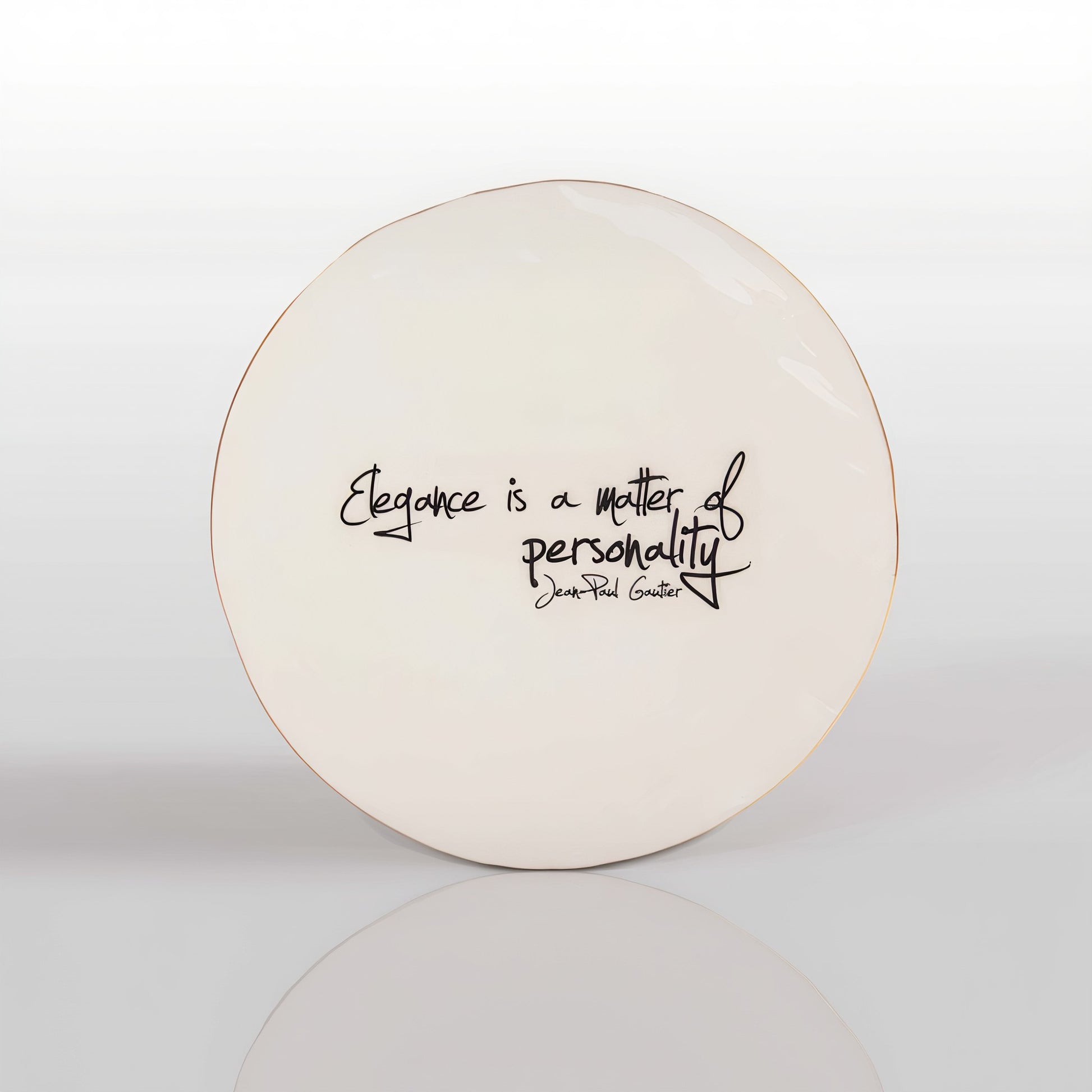 Enhance your dining experience with this stunning Jean Paul Gaultier Large Platter featuring an inspiring quote. Perfect for serving appetizers, desserts or as a statement piece in decor, this platter showcases Gaultier's iconic design aesthetic. Handmade with high quality materials, it adds a touch of elegance to any occasion. A must have for collectors and fans alike, this unique piece enhances your table setting or give it as a thoughtful gift.