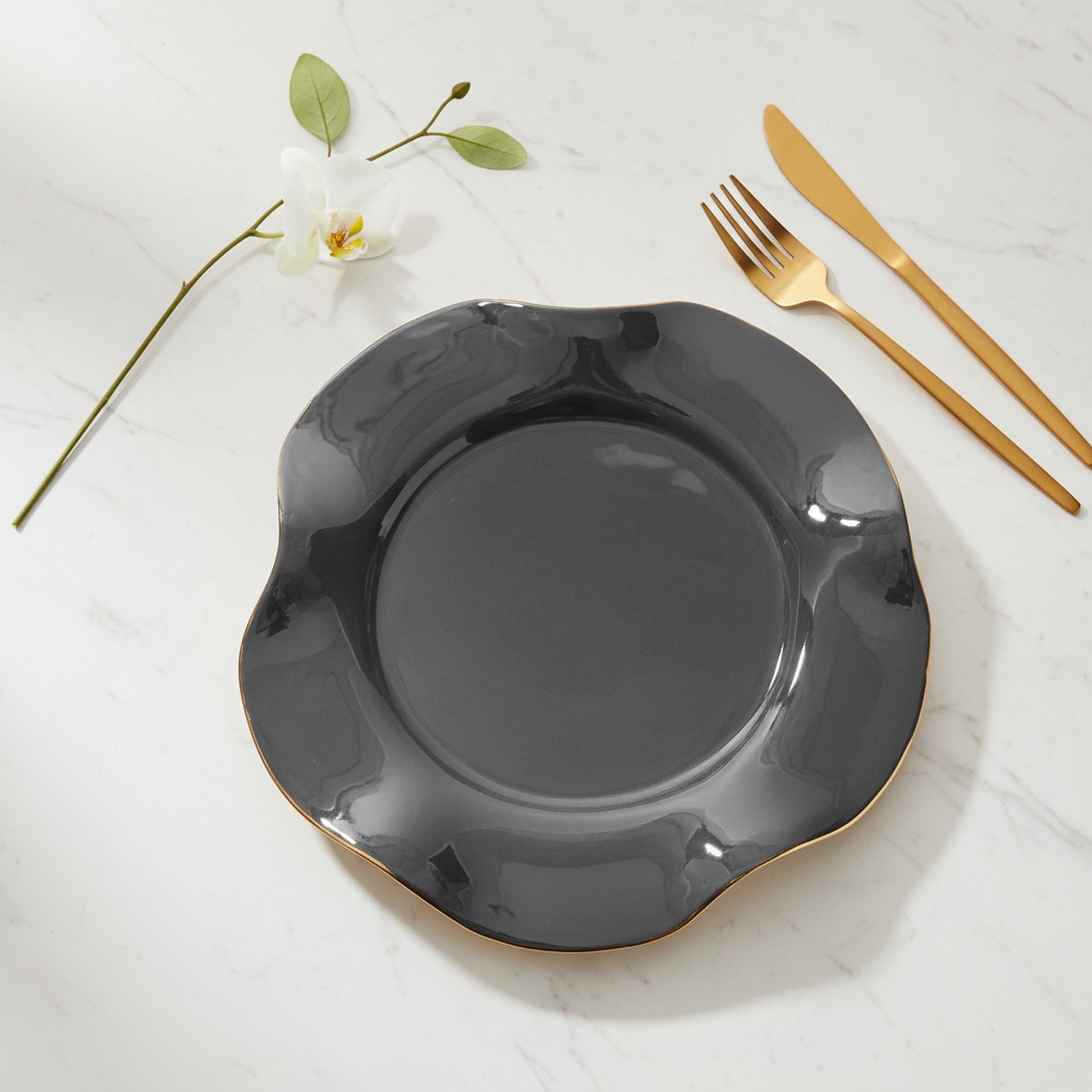 Nima Oberoi Black and Gold Small Ruffled Plate - Elegant Home Decor