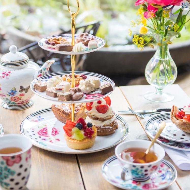 Our charming Set of 4 porcelain Floral and black polka dot Cake Plates with gold edging. These delightful plates are designed to elevate your dessert presentation to new heights. Crafted from durable porcelain, each plate showcases a lovely floral pattern intertwined with playful black polka dots, creating an eye-catching and whimsical aesthetic. The elegant gold edging adds a touch of sophistication and highlights the exquisite craftsmanship. Perfect for any occasion, these cake plates are a must-have for your upcoming soirées or afternoon tea parties.