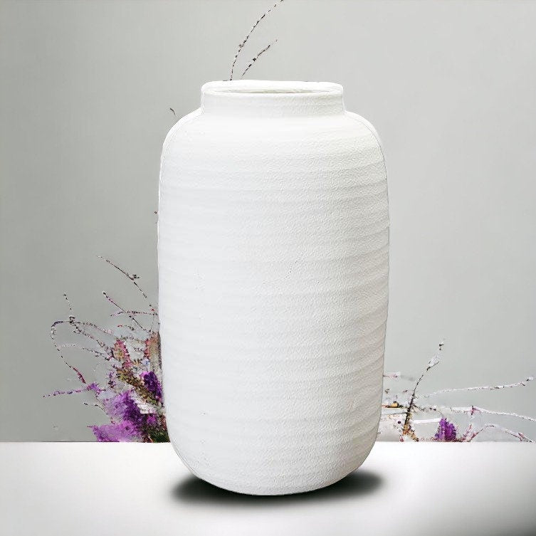 Introducing our exquisite Laarge White Vase, a true work of art crafted with love and attention to detail. Made from premium stoneware, this unique handmade piece is sure to make a bold statement in any home decor. Its generous size allows for an impressive display of your favorite blooms or simply for an eye-catching focal point on its own. The pristine white glaze adds a touch of elegance, effortlessly blending with any interior style.