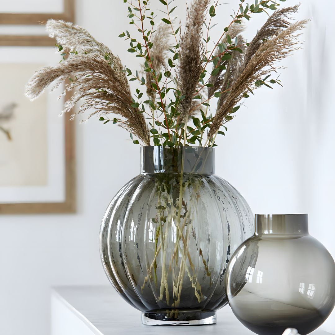 Elevate your home decor with our Round Luxury Smoke Coloured Ribbed Vase. This stunning piece features a stylish ribbed design that beautifully diffuses light, creating a captivating display in any room. Crafted with high-quality materials, the smoke-colored finish adds an elegant touch, making it perfect for both modern and traditional interiors. Ideal for showcasing fresh flowers or as a standalone accent piece, this versatile vase is a must-have for any decor enthusiast. Enhance your space today with this exquisite addition.