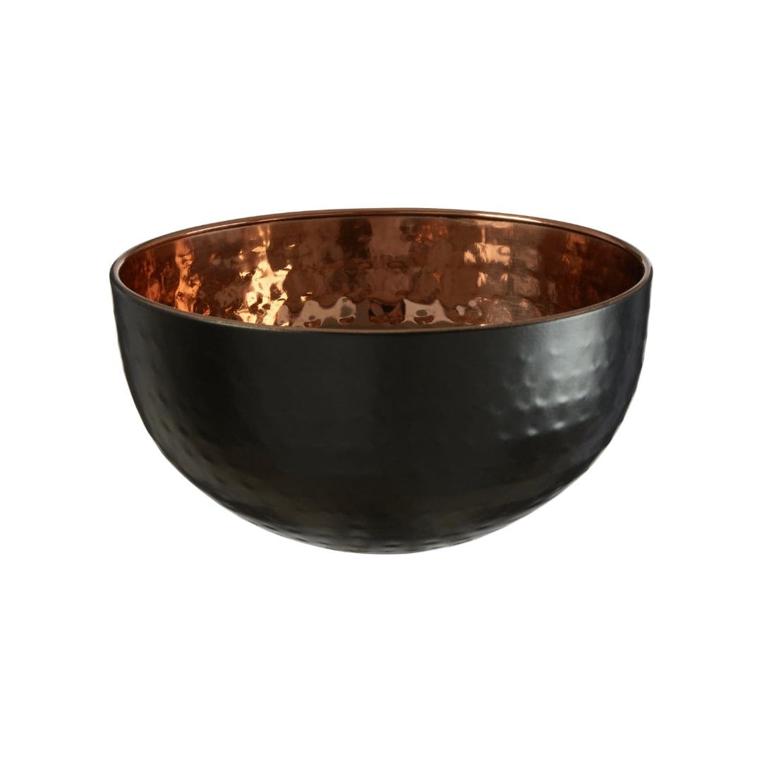 Matte Black and Copper Stainless Steel Bowl - Hammered Finish, Medium Size