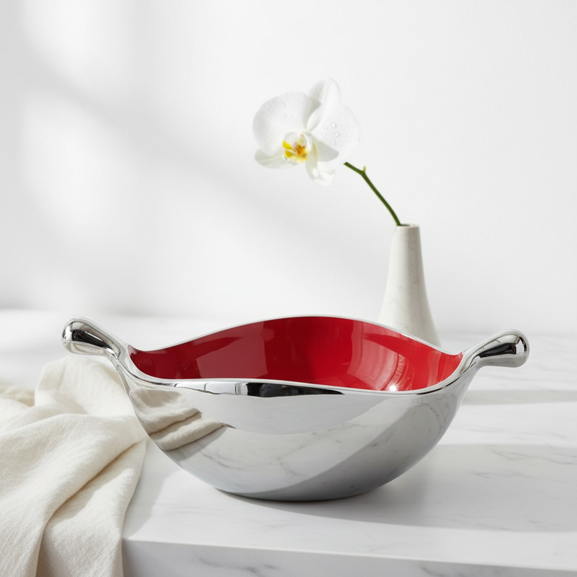 Nima Oberoi Silver Pod Dish with Crimson Interior - Elegant Decor