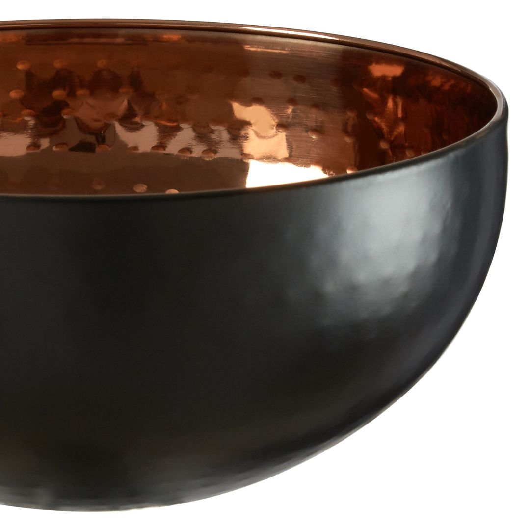 Elevate your table setting with this elegant small stainless steel bowl featuring a striking hammered effect. The matte black exterior adds a touch of modern sophistication, while the copper finish interior brings warmth and charm. Perfect for serving snacks or displaying decorative items. Truly a versatile piece for your home decor collection.