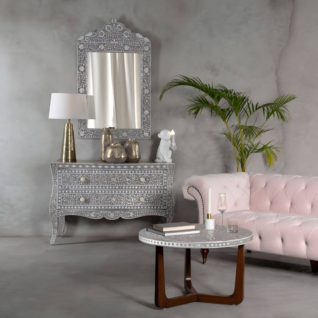 Vintage Style 2 Drawer Chest Featuring Exquisite Mother of Pearl Design